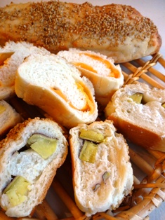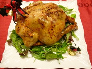 毎年恒例のクリスマス料理、ローストチキン。去年辺りから我が家の近所では丸鶏を扱う店がなくなり、車を走らせて隣市まで買い出しに行きました・・・お手軽サイズと2.5kgサイズのものと迷った末、小さい方にしたのですが、今年はこれでは足りず・・・毎年たいてい残るので、翌日はお肉をほぐして、サラダにしたりサンドイッチにしたりしていたのですが、少食の我が家の息子も、徐々に食べる量が増えてきたようで^^;でもこれ以上のサイズだと、うちにはのせるお皿がないわ~。前菜はちぢみほうれん草とチーズ、プチトマトの塩麹和え、パプリカ、長ねぎ、スナップえんどうのカマンベールチーズ焼き。こちらはスモークサーモンとかぶ、ブラックオリーブのマリネ、かぼちゃとマスカルポーネチーズのディップ、ハーブ入りクリームチーズのカナッペ。スープは、お取り寄せした大粒の広島カキを使ったチャウダーです♪
