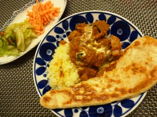 バターチキンカレー ナン&サフランライス(てんきち母ちゃんブログより)キャベツときゅうりの梅おかか和えにんじんの柚子風味サラダ(塩麹レシピ100 より) * * * * * * * * * * * * *今日は夫が飲み会&大掃除のやっかいごとのひとつ、換気扇掃除に取りかかる予定だったので、パワーのある朝のうちに、カレーとサラダを作っておきました。バターチキンカレーはたっぷりの炒め玉ねぎと、アーモンドパウダー、メイプルシロップ、生クリームがポイント。今日はかぼちゃも加えてさらにマイルドに。夕方はすでに筋肉痛ナンは一次発酵だけでいいので、ホームベーカリーで生地を仕込み、そのあとは伸ばしてフライパンで焼くだけ。息子が「カレーにはナン!」派なので、我が家ではごはんと一緒に添えることが多いです。冷凍してあったスポンジで、簡単おやつ。泡立てた生クリームとバナナをはさみ、ハーシーズのチョコレートシロップを回しかけ、シナモンシュガーをふりました。昨日はフローリングのワックスはがし&ワックスがけ、今日は換気扇掃除・・・とちょっと頑張ったので、甘いものが身体にしみます~