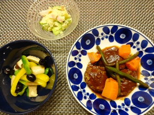 ビーフシチューアボカドと豆のサラダピーマンのマリネハーブフォカッチャ * * * * * * * * * * * * *大型の瓶詰種抜きブラックオリーブを買ったのですが、ちょっと豪快に使いすぎました・・・^_^;