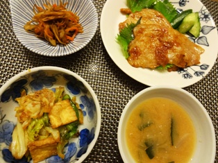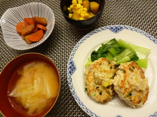 ごぼう入り豚つくね(有元葉子さんレシピ)鮭の粕汁白菜のおかか卵とじ(ごちそうさまが、ききたくて。より)じゃがいもの塩麹きんぴら 青のりがけ(塩麹レシピ100 より) * * * * * * * * * * * * *豚ひき肉に生のささがきごぼうやおろし生姜をたっぷり加えた肉だねを甘辛く照り焼きにしています。結婚当初から作り続けているお気に入りの味です。鮭の粕汁は夫の好物ですが、子供たちの反応はイマイチ。息子に至っては具だけ食べて、汁を残す始末じゃがいもの塩麹きんぴらはそのままでも美味しかったのですが、ふと思いついて青のりを振ってみたら、より子供たちにウケる味に