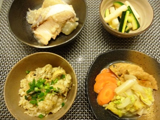 塩麹ぶり大根(塩麹レシピ100 より)牡蠣ごはん白菜とがんもどきの煮物長芋とズッキーニの蒸しいため(若林三弥子の蒸しいため完全マスターより) * * * * * * * * * * * * *味付けは塩麹だけというぶり大根。レシピを見たときは半信半疑でしたが、塩麹は塩分だけでなく、ほのかに甘みがあるので、これで十分でした♪大粒の冷凍かきがあると、いつでも牡蠣料理が楽しめて、牡蠣好きには嬉しい今日は牡蠣ごはんです。油揚げや干し椎茸、ごぼうなども加えて、具だくさん。一次発酵の終わった生地をカードで切っただけで焼成する簡単リュスティックです。藤田千秋さんの休日のお昼は、手づくりパンでのレシピで焼きました。生地をいじらないので、粉本来の美味しさと生地のみずみずしさが活きてます♪明太子入りガーリックバターとピーナッツバター&バナナのサンドイッチにしました。