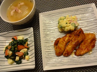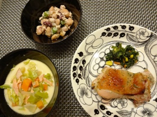 チキンの塩麹ハーブ焼きツナといんげん、豆のサラダ塩麹漬け鮭のチャウダー* * * * * * * * * * * * * *
