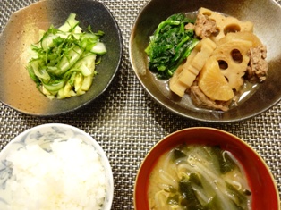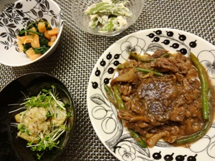 牛スジと根菜の煮物(「ストウブ」のおいしい使いこなしレシピより)なすときゅうりの冷製(たかこさんのしあわせふたりごはんより)もやしとわかめの味噌汁* * * * * * * * * * * * * *