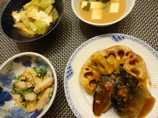 サバの味噌煮&レンコン長芋と三つ葉のたらこ炒めキャベツと厚揚げの煮浸しお豆腐とわかめの味噌汁* * * * * * * * * * * * * * 身の厚い、立派な真さばが手に入ったので、シンプルな味噌煮にして味わいました。冬になると食べたくなる味!本日のおやつ。パン教室で焼いたりんごのデニッシュにバニラアイスあつあつに温め直したデニッシュと冷たいアイスとのコンビネーションが最高♪