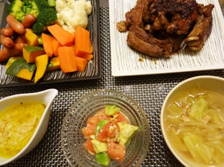 スペアリブのオニオンソース(こうちゃんブログより)ゆで野菜&塩麹バーニャカウダソース(塩麹レシピ100より)アボカドとトマトの塩麹和えキャベツのカレー風味スープ(おもてなしランチ会のらくちんメニューブックより)* * * * * * * * * * * * * * 厚手のお鍋でスペアリブを焼き付けてから、おろし玉ねぎやお醤油、はちみつなどを加えて煮込んでいます。簡単で美味しくできました♪アンチョビの代わりに塩麹を使ったバーニャカウダ風のソースは、蒸し野菜にぴったりの味野菜がたくさん食べられます。