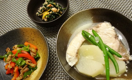 塩麹ぶり大根(塩麹&麹レシピより)ピーマンと牛こまのきんぴらほうれん草と鮭ハラスの柚子和え * * * * * * * * * * * * *牛肉と大根のコチュジャン炒め(たかこさんのほめられ弁当 [ 稲田多佳子 ]より)小松菜のごまクリーム和え( 〃 )にんじんの大葉塩麹和えかぼちゃのカレーバター煮 * * * * * * * * * * * * *