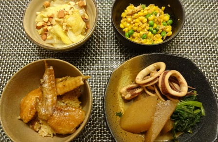 鶏手羽先の炊き込みごはんいか大根とうもろこしとグリンピースの塩麹炒め白菜の炒め蒸し * * * * * * * * * * * * *先週の「ためしてガッテン!」でやっていた手羽先特集。うちの夫は名古屋出身で、手羽先が大好きなのですが、子どもたちには「骨が多くて食べるところが少ない!」と不評しかし、その特集では、骨を抜いて食べやすくする方法が紹介されていました「おお、これはイイ」とさっそく挑戦することに。気持ちいいくらいにするっと骨が抜けて、食べるのもラク♪手羽先の味がしみ込んだごはんも美味でした次は手羽先の唐揚げを試してみようと思います生とうもろこしは今年お初。2本分を包丁でこそげて、やはり生のグリンピースと合わせ、鶏のむね肉と一緒に炒めて、味付けは塩麹とこしょうのみ。素材の甘味が感じられて、やはり旬のものはシンプルな調理方法でもおいしいー。豚肉のチーズ入りピカタじゃがいもとにんじんの甘辛きんぴらキャベツとわかめのナムル * * * * * * * * * * * * *