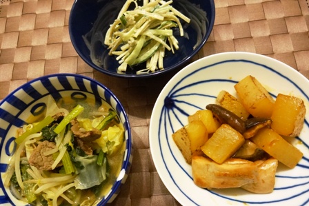 大根と鶏肉のコチュジャン煮クッパごぼうときゅうりの味噌マヨ和え * * * * * * * * * * * * *