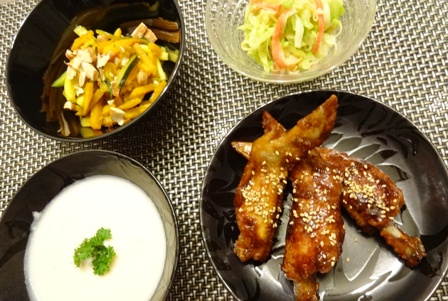 手羽先の唐揚げかぼちゃとズッキーニのナッツオイルがけ(若林三弥子の蒸しいため完全マスター [ 若林三弥子 ]より)キャベツとかにかまのカレー風味コールスロー(つくりおきおかずで朝つめるだけ!弁当(2) [ 小田真規子 ]より)かぶのクリームスープ * * * * * * * * * * * * *ためしてガッテンで紹介されていたレシピです。手羽先の骨を一本抜き、靭帯の部分も切っておくと、食べるのがとてもラク。するりとお肉が骨から離れるので、骨付き肉が苦手な子どもたちにも好評でした。少し手間はかかりますが、骨を抜く作業は慣れれば、さほど時間もかかりません。これで、手羽先=食べにくいというイメージも払拭できそうかぼちゃとズッキーニのサラダは、しょっちゅうリピートしているお気に入りレシピ。最近のズッキーニを使ったお料理の中では一番のヒット作♪蒸しいためしたかぼちゃとズッキーニにすし酢を回しかけ、オリーブオイルで炒め揚げにしたナッツをオイルごとかければ出来上がりレシピではカシューナッツでしたが、その時にあるナッツをいろいろ試しています。今日はホールアーモンド。大きいので予めロースとして刻んでから加えました。ナッツの歯ごたえも食感のいいアクセントになって、子供たちにもウケがいいです。かぶのスープは、かぶだけでは淡泊すぎるので、にんにくとベーコン、玉ねぎで味だしをしています。バーミックスもどきのマルチブレンダーを買ったので、ミキサーを使わずにお鍋でそのままポタージュ状にできて、とてもラクになりました(*´∀`*)★1台6役!マルチブレンダー 【送料無料】【半額以下】【おまけ付き】≪貝印≫セレクト
