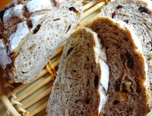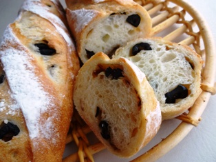 ブラックオリーブをたっぷり加えた、フランスパン用粉を使ったリーンなパンです。今日はフライドオニオンも加えてみました。ゆっくり発酵カンパーニュのレシピで焼きました。紫芋パウダーを加えたカンパーニュ生地に、マスカルポーネチーズと紫花豆の甘煮を巻きこんであります。ほんのり甘くて、おやつにもなるカンパーニュです♪