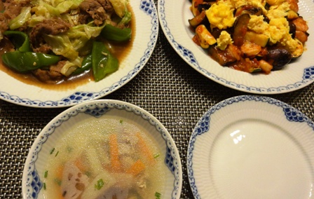 野菜入りエビチリ(栗原はるみさんレシピ)牛肉とキャベツのオイスター炒め根菜スープ * * * * * * * * * * * * *今日のお昼ごはん。先日コストコで買った大量のお刺身用サーモンもこれが最後。ほうれん草と一緒にクリームスパゲッティにしました。