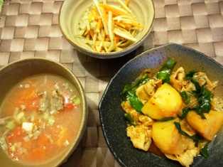 キムチ入り肉じゃがごぼうとにんじんの塩麹きんぴらトマトと牛こまのスープ * * * * * * * * * * * * *エリンギの牛肉巻き&パプリカ、なす小松菜の卵マヨ炒めごぼうとベーコンのバター炒め * * * * * * * * * * * * *