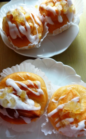 門間みかさんのレシピで焼きました。リッチな配合の生地に刻んだレモンピールを加えています。焼成後、レモンアイシングとレモンピールをトッピング。じめじめした今の時期に食べたくなる爽やかなパンです。【送料無料】ほんのりしあわせ。おうちパン [ 門間みか ]