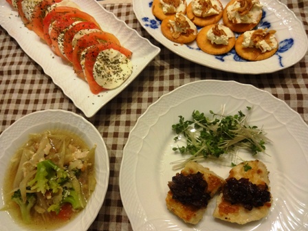 かじきまぐろのオニオンバルサミコソースがけカプレーゼごぼうとブロッコリーのスープ * * * * * * * * * * * * *