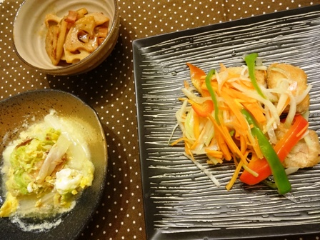 鮭の南蛮漬け白菜の卵とじれんこんのきんぴら * * * * * * * * * * * * *