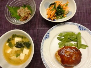 鶏ひき肉のあんかけハンバーグほうれん草とにんじんの胡麻和えアジのなめろうお豆腐とわかめの味噌汁 * * * * * * * * * * * * *