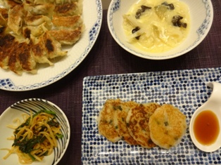 餃子大根もちほうれん草ともやしの食べラー和え白菜ときくらげの卵スープ * * * * * * * * * * * * *大根もちは夫の大好物。点心のあるお店に行くと必ず注文するほど(^_^;)大根おろしと戻した干しエビ、片栗粉と上新粉を合わせて練って焼きます。昨日は娘が学校で発熱し、お迎えに。熱が高いのですぐに病院に連れて行きましたが、発熱してまもないので、インフルエンザの検査は明日にしましょうと((+_+))今日は朝イチで再度病院に行き、検査したところ、インフルは陰性。寒暖差も激しいし、環境も変わって、娘なりにストレスと感じていたのかもしれません。午後には熱も下がってひと安心。ただ、まだ食欲がないようなので、餃子は食べないかもと思い、娘の大好物のマーボー豆腐を作りました。