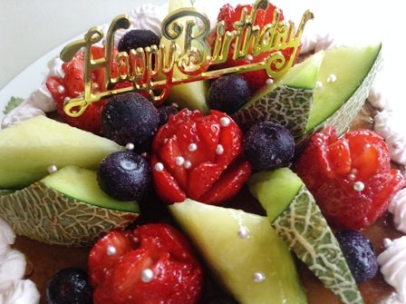 息子の誕生日ケーキです。とりあえず、息子の好きなものを全部のっけました(*'艸`*)スポンジの間には、自家製いちごシロップで香りづけした生クリームを挟み、トップには薄く焼いたケーキと同じサイズのプリン、そしてあまおう、アンデスメロンにブルーベリー。いちごはバラのカッティングにしてみましたが、なかなか難しく、出来はイマイチ(T_T)この画像を参考にしたのですが、あまおうではなくて、もっと小ぶりのいちごのほうがよかったのかも…。カットすると、スポンジ→いちごクリーム→スポンジ→プリンの層になっています(^O^)息子は身長は夫をようやく抜いた位ですが、ここ最近、肩幅がぐっと広くなり、ひょろひょろの印象から少し男っぽい体型になってきました。でもプリン好きは小さい頃から変わらず(^◇^;)学校帰りにも食べてくることがあるらしい...。