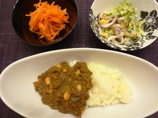 ひき肉と豆のカレーコールスローキャロットラペ * * * * * * * * * * * * *今日は夏休み前最後の自由な一日!ということで、友人と韓国料理ランチに行ってきました。名物の7分テジ(豚)キムチのほか、ヨルタン(熱炭)プルコギ、海鮮チヂミを食べてきました♪韓国のチェーン店の日本初出店の店舗らしいのですが、どれも辛くて、本場の辛さ(?)をキープしている模様(^_^;)とっても血行がよくなって帰ってきました
