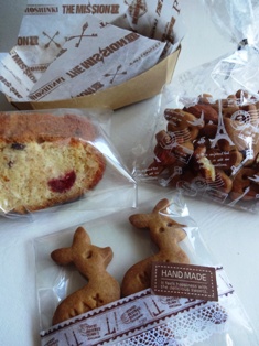 毎年、夫の実家へ帰省するときには、焼き菓子の詰め合わせを持参しています。今年は年末ギリギリまで私の仕事が入っていて、市販品にしよう・・・と、京山の和菓子の詰め合わせを買ったのですが、 買った後で賞味期限を確認したら、お菓子の中になんと1月1日までのものが・・・お年賀の手土産で持参するにはあんまりな賞味期限だったので、結局、今年も焼きました^^; 贈り物の定番、キャラメルパウンド。甘いものが苦手な義父も義弟にも受けがいいお菓子です。 スノーボールクッキー2種。お正月らしく、きなこ味と抹茶味にしました。 これも万人受けするお菓子です(*´∀`*) 稲田多佳子さんのレシピで焼いた、紅玉とアールグレイのパウンドケーキ。 フリーズドライのいちごパウダーを使ったメレンゲ菓子。桜の口金で絞りました。 こちらもプレゼントでよく焼くフロランタン。レース柄のテープでラッピング。 ラッピングには、最近、シールよりもマスキングテープを使うことが多いです。 全員集合の図。籐のかごに詰めていざ、帰省!