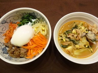 ビビンバスンドゥブチゲ * * * * * * * * * * * * * 夫、宴会続きで、簡単母子ごはんが続きます…(^_^;)