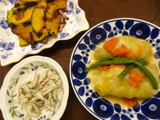ロールキャベツごぼうと鶏肉のごまマヨ和えかぼちゃとベーコンのガーリックソテー * * * * * * * * * * * * *
