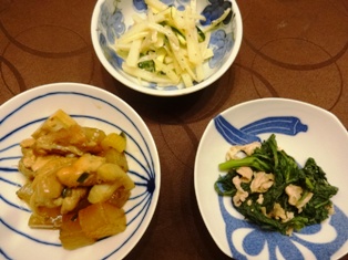 鶏肉と大根の煮物じゃがいもとズッキーニの塩麹炒め春菊と豚肉の柚子和え * * * * * * * * * * * * *