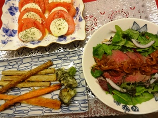 実家の母を招いて、恒例のクリスマス会♪ 今年は私の仕事が思いのほか立て込んでいたので、前日に作り置きできるものが中心です(・・;) メインは毎年ローストチキン。今年はロピアで特大のハーブ鶏の丸鶏を購入塩レモンとおろしにんにくでシンプルに味付け。 野菜は塩ゆでしたロマネスコ。 前菜のサラダいろいろ。お刺身とズワイガニは実家の母からの差し入れ。やはりスーパーのものとはひと味違っていて美味でした * * * * * * * * * * * * * かぶとラディッシュと生ハムのマリネオレンジとレーズン、クリームチーズ入りのキャロットラペキャベツと海老のしそマリネ カマンベールチーズを横半分にカットして、中身をくり抜き、 バターとラムレーズンを合わせたものを詰め直してから、固めてカットしたおつまみチーズ。夫がほとんど食べました くり抜いたカマンベールチーズはフランスパンに塗り、ナッツ類、ドライハーブをのせてこんがり焼き、これもおつまみに。