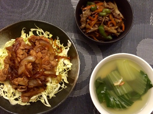 豚丼牛ごぼうきんぴら青梗菜と桜海老のスープ **************