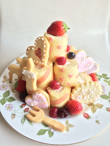 最近、ネットでよく見かけるようになったロールケーキタワーを作ってみたくて初チャレンジ。パータデコルテも初めてだったので、なかなか大変でした^^; ****************** チキンと野菜のぎゅうぎゅう焼きかぼちゃのミルクスープ大根とホタテのサラダ ******************