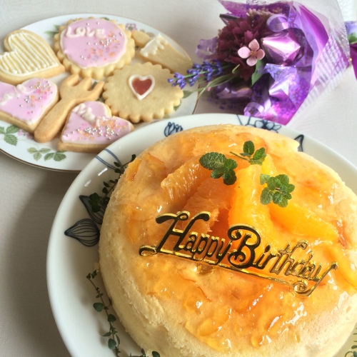 夫の誕生日ケーキです。リクエストでチーズケーキ。スフレかレアということでしたが、真冬なので、レアは却下してスフレに^^;