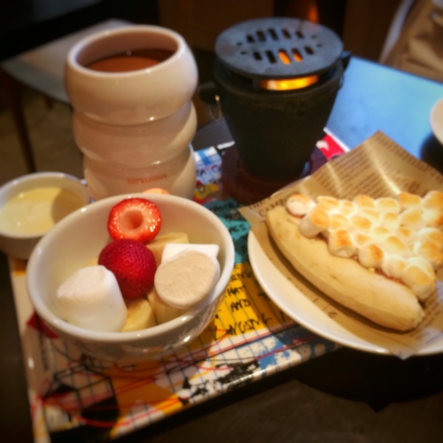 イクスピアリにオープンしたMax Brenner Chocolate Barに行ってきました。入店するとすぐにチョコレートの甘い香り〜名物のマシュマロピザはピザ生地+ミルクチョコレート+マシュマロで、本当に甘かった…^^;ピースをさらに友達とシェアで、アラフィフにはちょうどよい量でした。クレープとかもう少し食べてみたいメニューがあったのですが、あまりの甘さにギブアップ お食事メニューもあります。しょっぱいもの〜!っと思って頼んだ4種のチーズピザでしたが、これにもはちみつが添えられていました オニオンリングにも謎のチョコレート色のソースが・・・おそるおそるつけてみたら、ココアの入ったビネガー系のディップで、甘くはなかったです 大根と豚バラ肉の煮込み小松菜と油揚げのナムルなすとハムの中華風マリネ *****************
