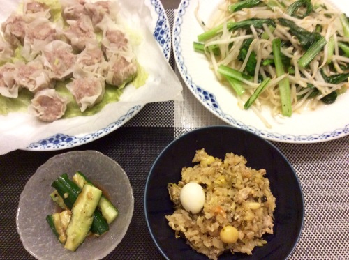 シューマイ巻かない中華ちまき きゅうりの即席漬けもやしと小松菜の塩麹にんにく炒め ****************