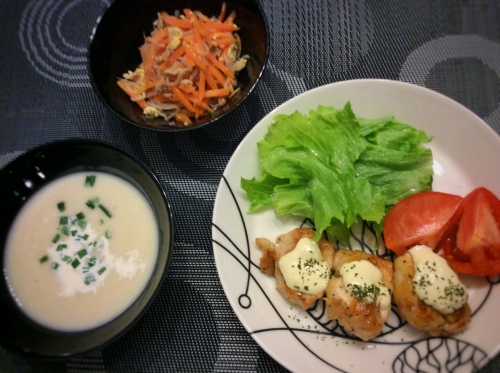 チキン南蛮ヴィシソワーズにんじんとツナ、しらたきの卵炒め ************************