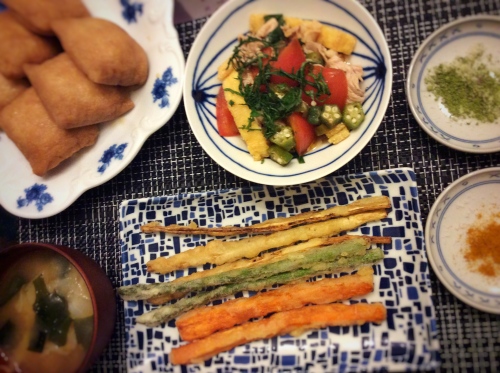 豚バラ大根かつおのコチュジャン漬けサラダにんじんとニラのツナ炒め ******************** 今日は仕事が休みで、特に用事もなく、家でのんびりできました♪ ひとりおうちランチは五穀米でオイルサーディン丼。ランチョンマットはニトリのプチプラ品なのですが、和食にも洋食にも合うし、とっても優れモノで、気に入ってます ************** 牛肉とピーマンのオイスター炒めにんじんの味噌バター炒めオクラのおかか醤油和え高菜入り卵焼き ***************