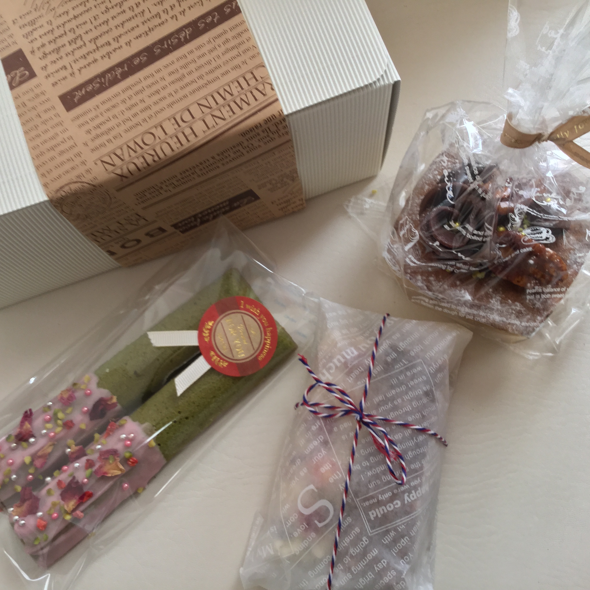 ホワイトチョコレートには、+クランベリー、ピスタチオ、アーモンド。