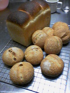 またまたパンを焼いています。もちろん天然酵母です。天然酵母パンは発酵に時間がかかるので、朝が遅い私は起きてすぐに仕込んでも焼き上がるのが夜中になってしまうのです。本日は全粒粉を使った山食とイチジク入りの丸パンを作りました。焼き上がったのは夜中の11時過ぎ!でも焼き立てがあまりにおいしそうだったから1個食べちゃいました!あ~あ、こんな時間なのに、デブまっしぐらだわ。。。