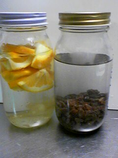 何を?これです。実は酵母を飼いはじめました。今年こそは天然酵母パンに挑戦しようと思って、酵母を育ててみる事にしました。天然酵母ってなんだか面倒くさいと思っていたけど、本を読んだりネットで調べてみたら作り方は意外に簡単そうだったの。ただ世話をしないといけないので、手がかかると言えば手がかかるかな?まあペットを飼ったと思って頑張って育てたいと思っています。材料はいたって簡単。レーズンとその5倍量の水夏ミカン半分とその5倍量の水と蜂蜜適量それらを煮沸消毒したきれいな瓶に入れて蓋をする。温度を28度位に保つと元気な酵母が育つようです。これを毎日様子を見ながら5~7日ほど置きます。液体から泡がブクブク出てきたら元気な酵母が育った証拠。あ~私の酵母くんは元気に育ってくれるかしら?今の季節だと室温ではちょっと低すぎるみたい。仕方がないので夜寝る前に酵母くんの寝床を作ってあげました。必殺発砲スチロール。中に保温のためのお湯と温度計をセットして、おやすみなさい。
