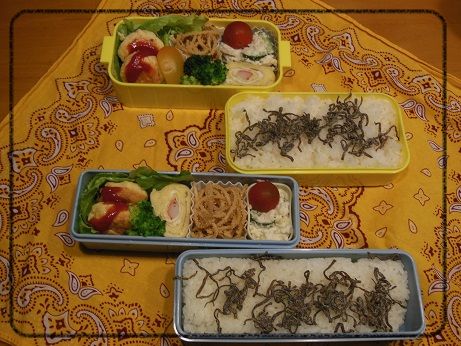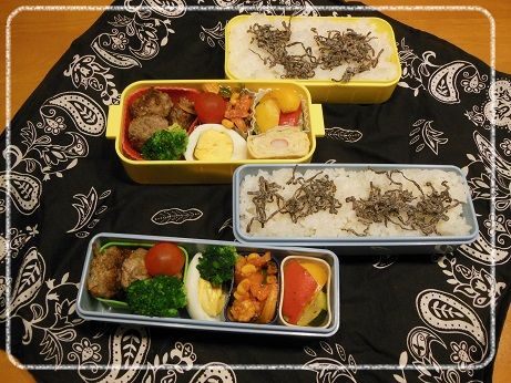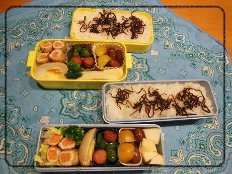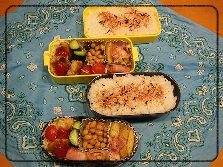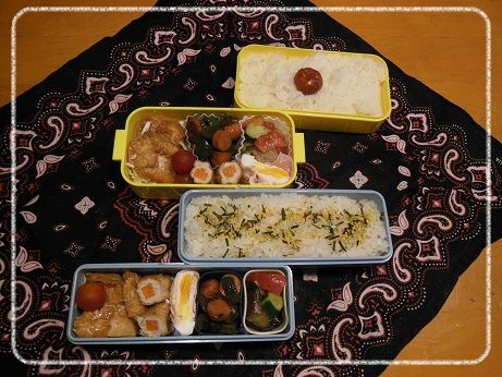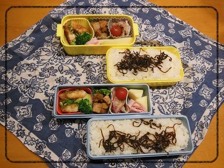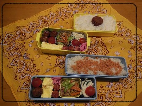 今日のお弁当は、おからハンバーグ、ブロッコリー、ミニトマト(黄)、卵焼き、たらこスパ、おからサラダです。明日から下の娘はお弁当いらないそうで、上の娘と旦那さんの分だけになります。そのぶん、家でお昼ご飯つくらなくちゃなんですけどね!!さぼってた今週分のお弁当をアップしました。