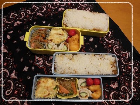 今日のお弁当は、チャプチェっぽいやつ、おからキッシュ、きゅうり、ミニトマト、ハム、ウィンナー、ビワ、サクランボです。お弁当は下の娘と旦那さんの分だけ。上の娘は、今年の1月末に受けた手術の経過検査のため津の大学病院までお出かけです。娘の手術についてはまた別で書こうかなっと思ってます。