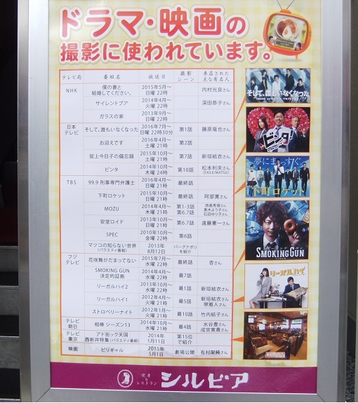 2016年9月15日、店頭に撮影に使われた番組名の一覧が出ていた。
