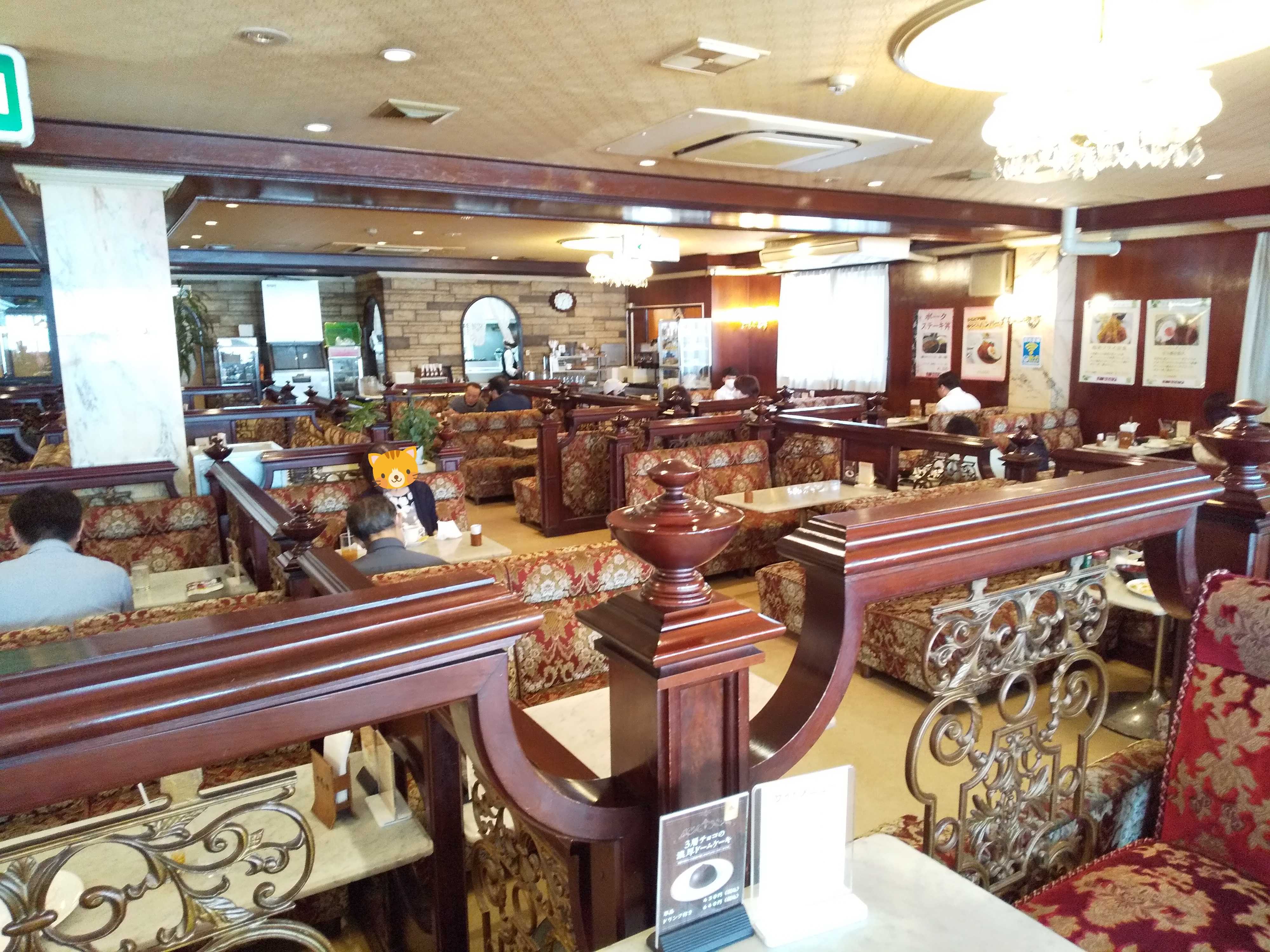 無駄に広い、無駄にゴージャス 」 とも評される店内は”純喫茶”風。