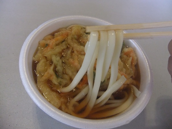 ちょっと硬めのうどん。味は悪くはないけど褒めるほどでもない。こういうものを食べていることに喜びを感じるのだ。満足。