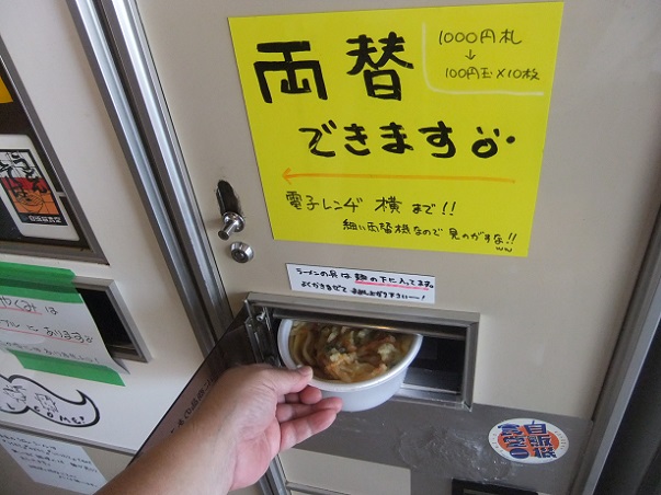 さあ、食べるよ、330円の自販機天ぷらうどん
