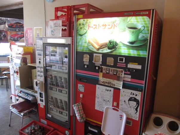 この手のマニアにとっての「懐かし自販機御三家」である、めん類自販機・ハンバーガー自販機・トーストサンド自販機が置いてあるのがポイント高い。