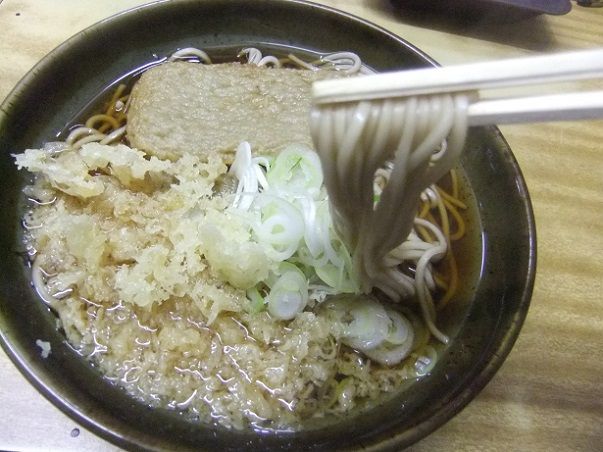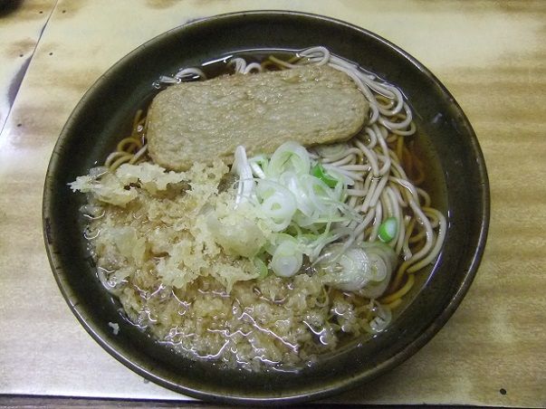 ちゃんと、天ぷらではなくて練り物(を揚げたもの)だと知らせてくれる。また、「揚げ玉入れますか?」と聞かれるのでありがたくいただく。普通の茹で麺。店内に【小幡製麺】のばんじゅう(麺箱)が見える。じゃこ天も図抜けたものでもないのだが、ほっと一息つける安らぎと美味しさ。立ち食いそばが似合う空間なんだよなぁ