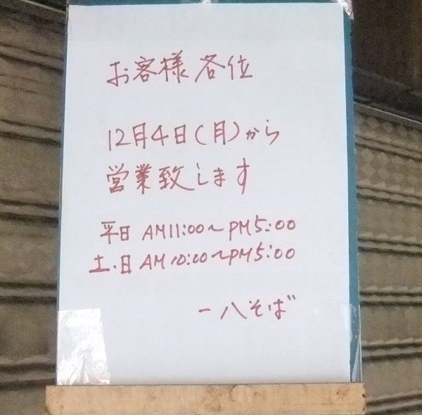 骨折のリハビリで休業だったようだ。2017年12月4日再開予定。12月1日撮影。