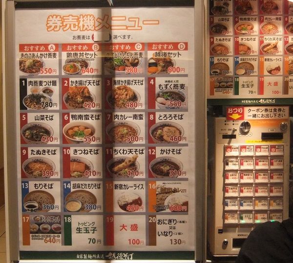 券売機で食券を買うのだが、店頭のメニューが券売機の配置と同じになっているのが、いい心遣いだよね