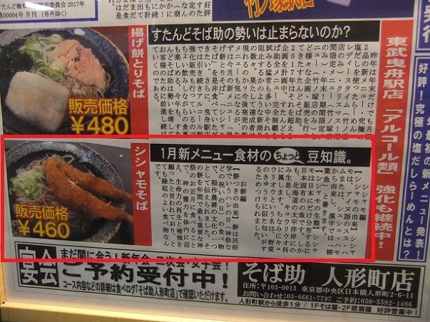 駅そばの【すたんど そば助】さんで1月の季節メニューで扱っているんだよ