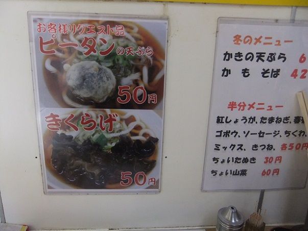 そば(小)とゲソ天にして、それだったらブログに残さなくてもいいかな、なんて考えながら入店すると、おっと、ついにピータンときくらげを始めたんだ。こりゃぁ、ブログだ